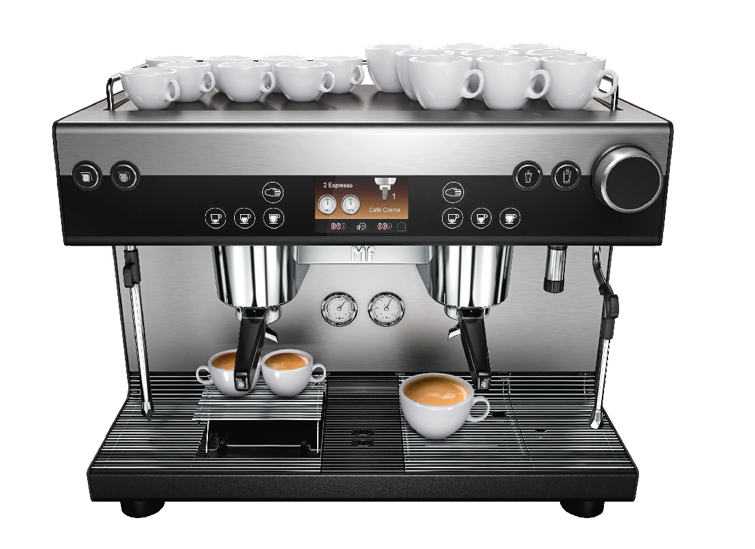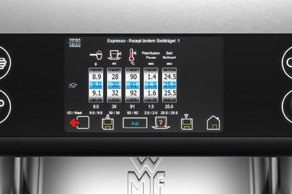 The WMF espresso detects the portafilter automatically controls the brewing time, signals when the grinding degree needs readjusting, grinds the coffee and tamps automatically with 100% consistency.